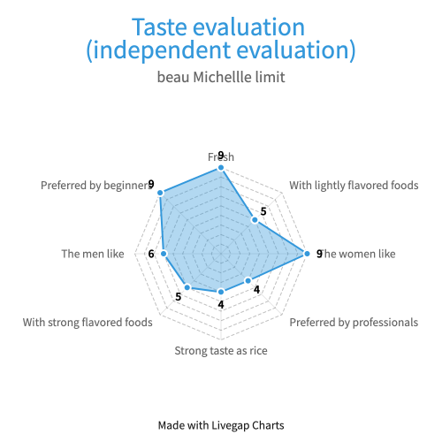 It is easy to drink. It is very easy to drink, with a hint of sweetness and no sourness characteristic of sake. It has a sweet taste that is different from wine, which is popular among women. It is refreshing and suitable for beginners. It is recommended to drink it as it is. It seems to go well with salads and fruits.